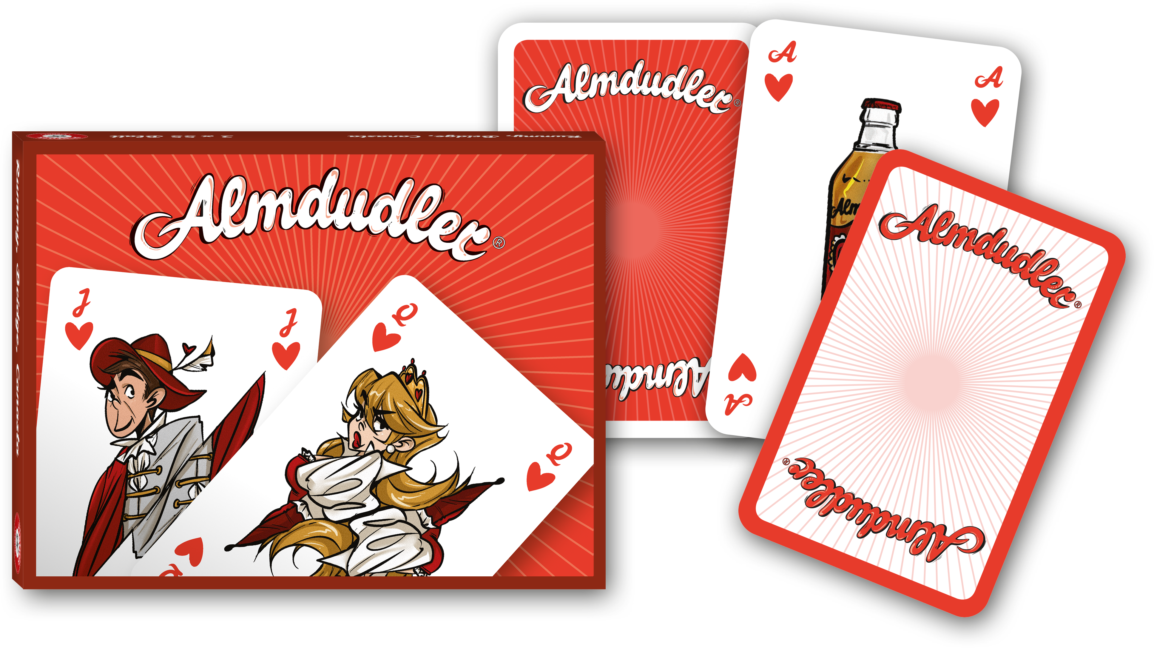 Mit den Almdudler Spielkarten kommt echtes Almdudler-Feeling direkt an den Spieltisch: Das Kartenset kombiniert klassisches Spielvergnügen mit liebevoll gestalteten Comic-Illustrationen rund um die Marke – inklusive unserem charmanten Trachtenpärchen und dem unverwechselbaren Almdudler-Look. Ob für die nächste Poker- oder Schnapsrunde, als Mitbringsel oder als Sammlerstück: Diese Karten sind ein originelles Highlight für Fans und alle, die’s einfach dudelig lustig mögen.