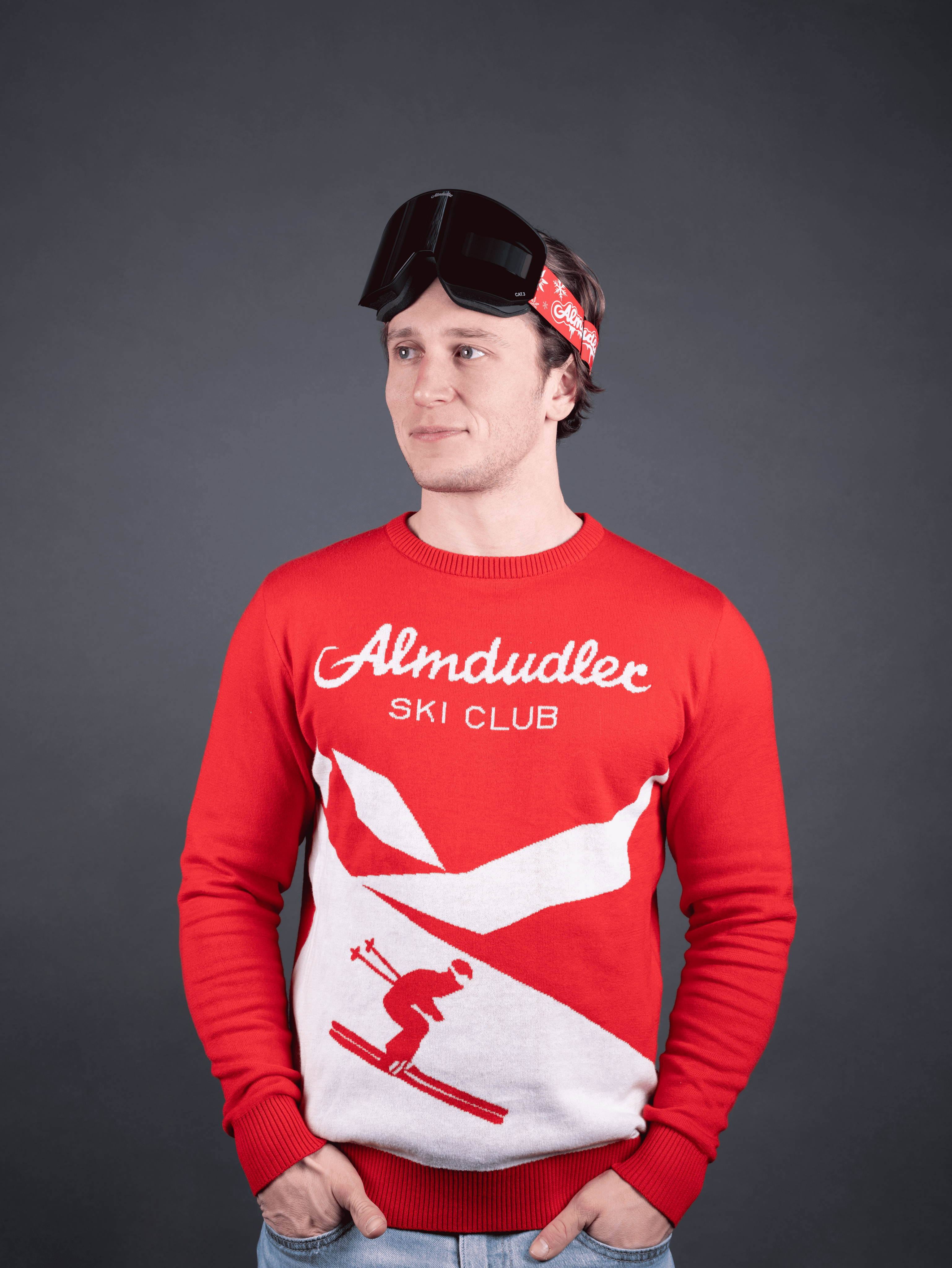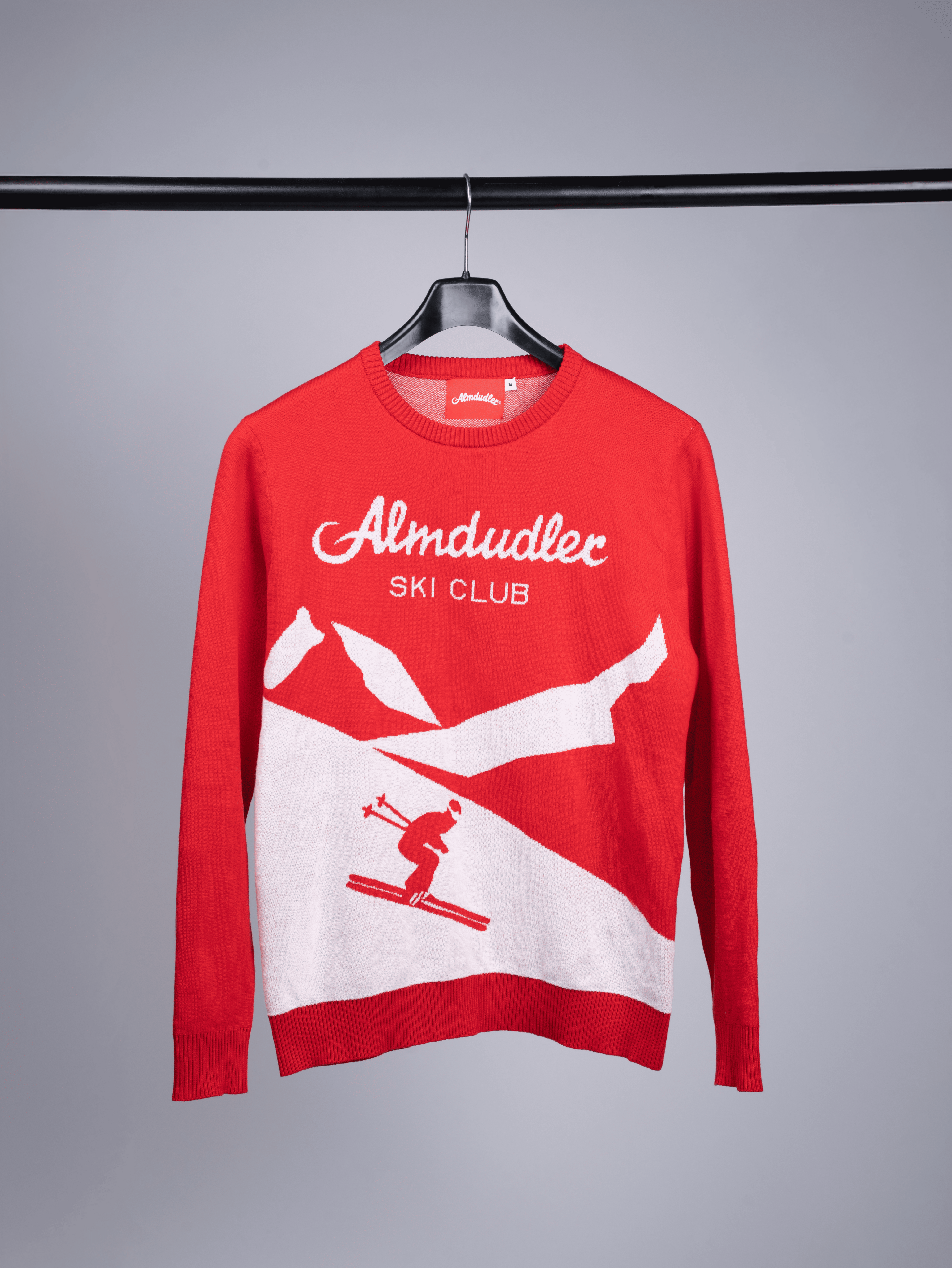 The Almdudler Ski Club Jumper is a stylish must-have for all those who love fresh mountain air, winter vibes, and iconic Almdudler design. The vibrant red colour featuring a white knit graphic of mountains and skiers creates an authentic retro ski look that's just as good on the slopes as it is during a winter stroll on city streets or a park.